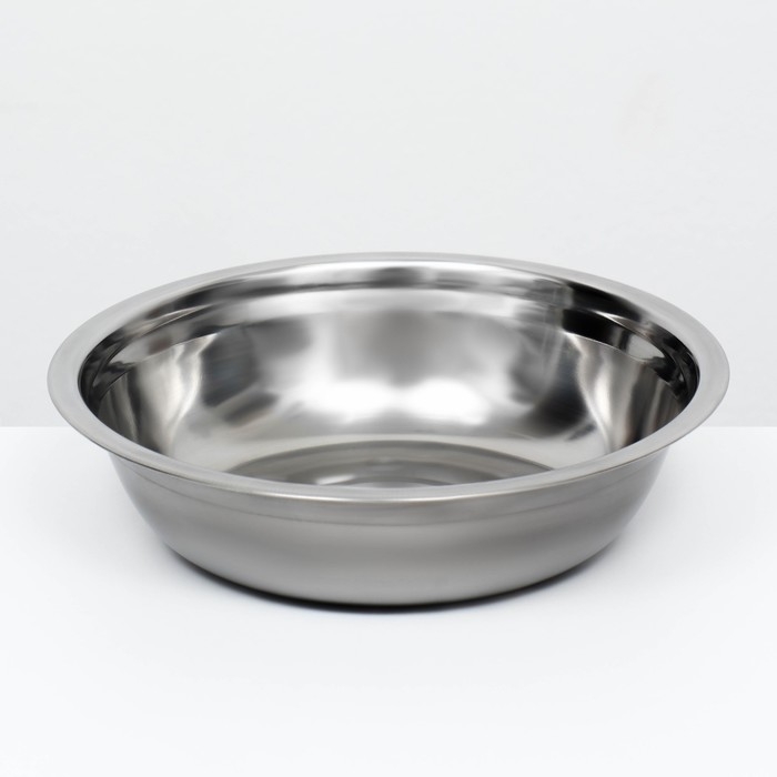 Миска металлическая эконом 0,85 л, 21 х 6 см - это простая и функциональная миска для кормления или поения домашних животных. Она изготовлена из нержавеющей стали. Имеет плоское дно и бортики, чтобы предотвратить разлетание пищи или жидкости во время кормления и питья воды.