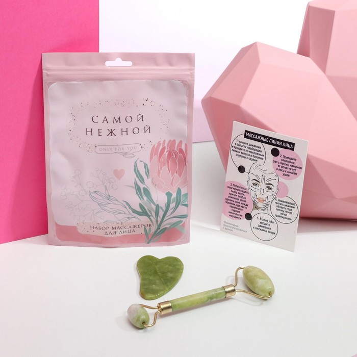 Массажер для лица, гуаша набор «Самой нежной», 14 х 20 см, кальцит и серпенти