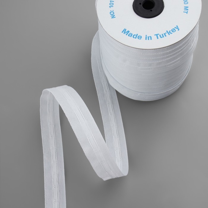 Шторная лента классическая, матовая, 2,5 см, 100 ± 1 м, цвет белый