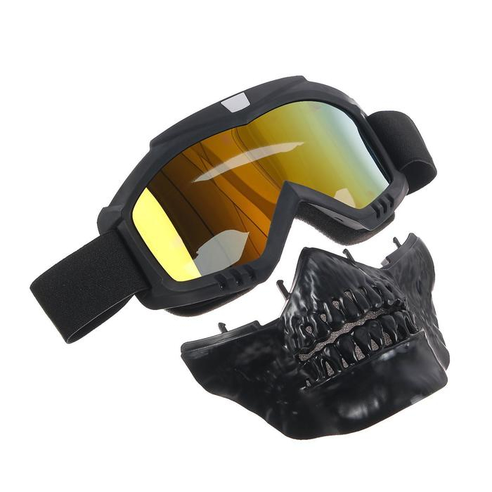 Очки-маска для езды на мототехнике, разборные, визор оранжевый, цвет черный