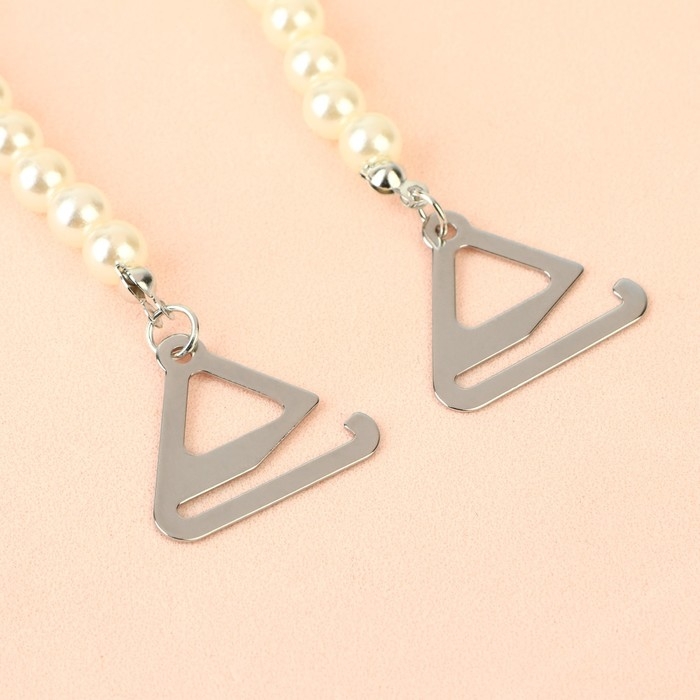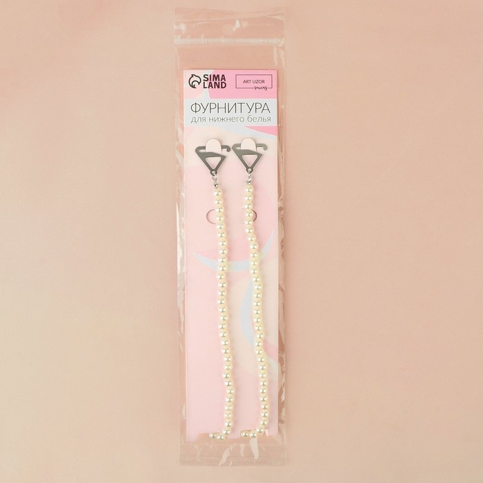 Бретели декоративные с жемчугом, фурнитура металл, 5 мм, 45 см, пара, цвет белый