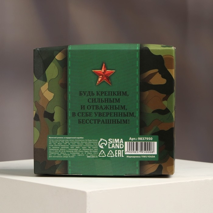 Мужской ремень «C 23 Февраля», кожзам, цвет чёрный