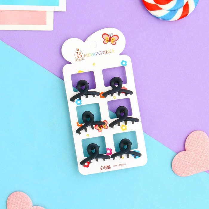 Краб для волос "Ариэлла" (набор 6 шт) зубчики дуга, 2,5 см, чёрный