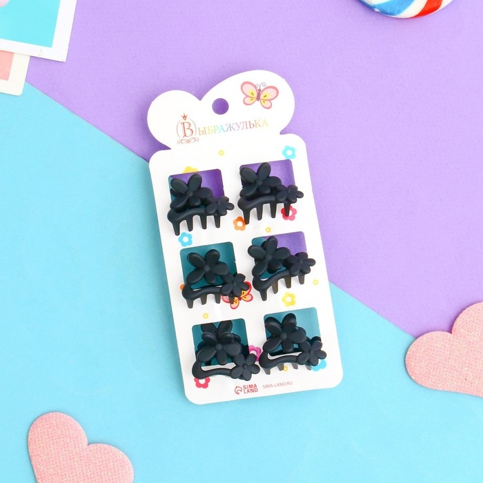 Краб для волос "Ариэлла" (набор 6 шт) ромашки дуга, 2,5 см, чёрный