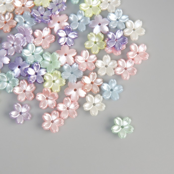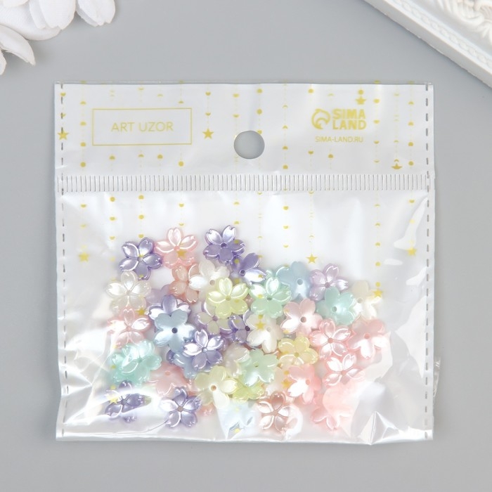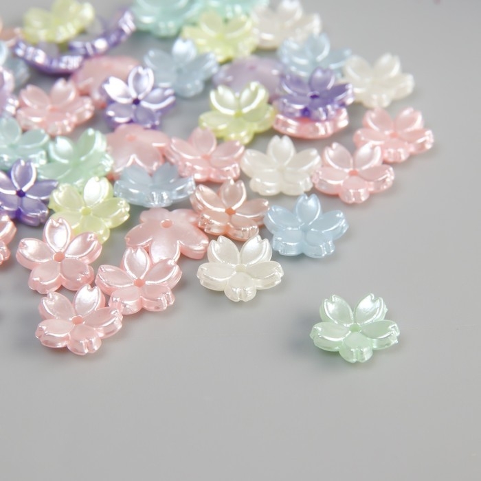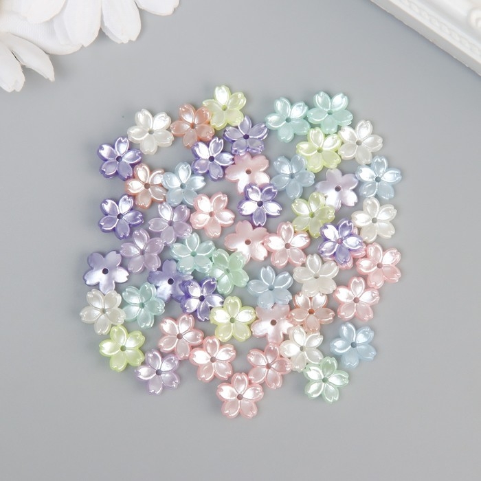 Бусины для творчества пластик "Цветочки"цветной перламутр набор 50 шт 1х1х0,3 см