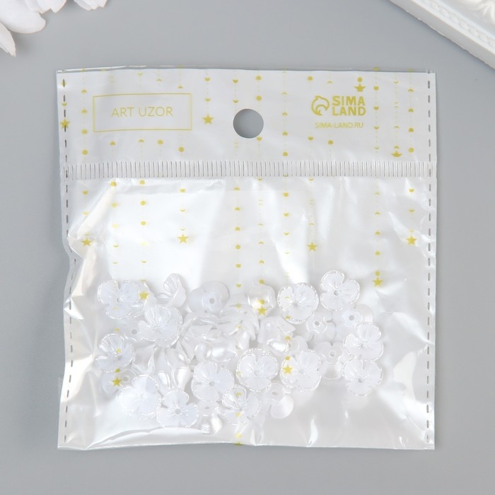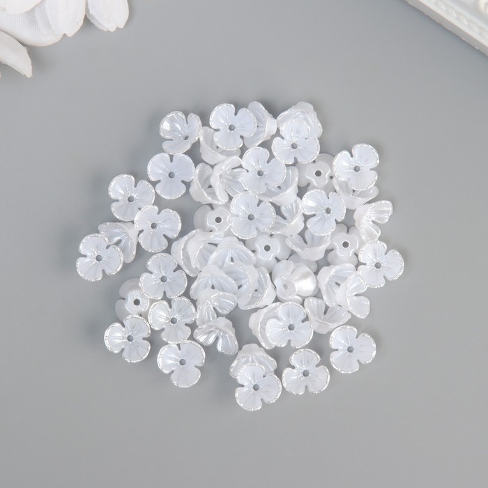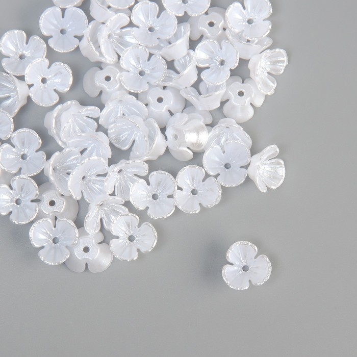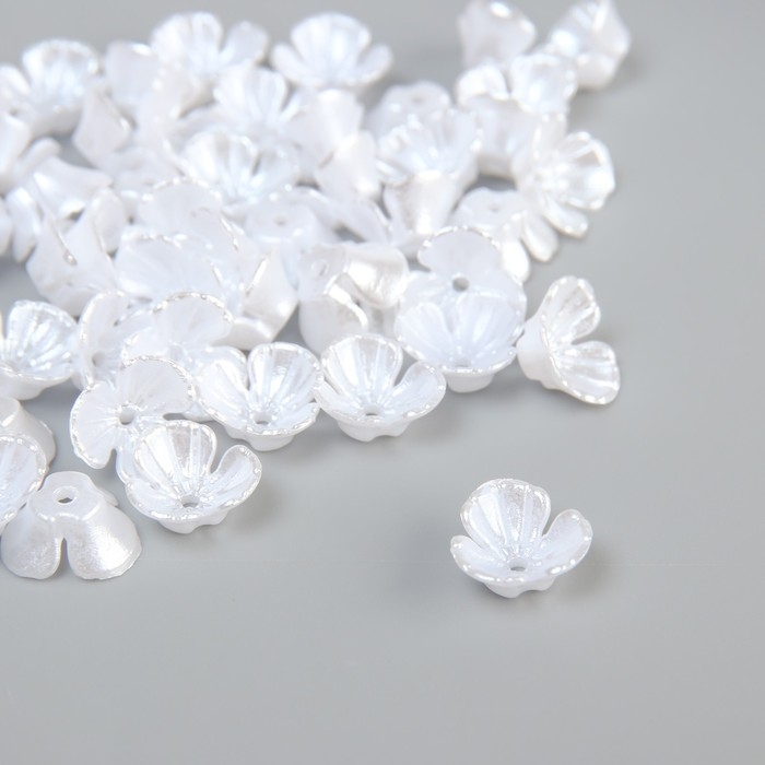 Бусины для творчества пластик "Шляпка для бусин" белая с серебром набор 50 шт 1х1х0,5 см