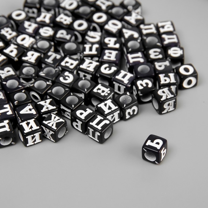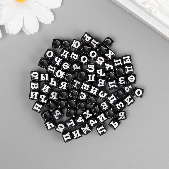 Бусины для творчества пластик "Русские буквы на чёрном кубике" набор 500 гр 0,6х0,6х0,6 см