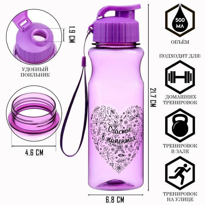 Бутылка для воды, 500 мл, "Счастье в моментах"