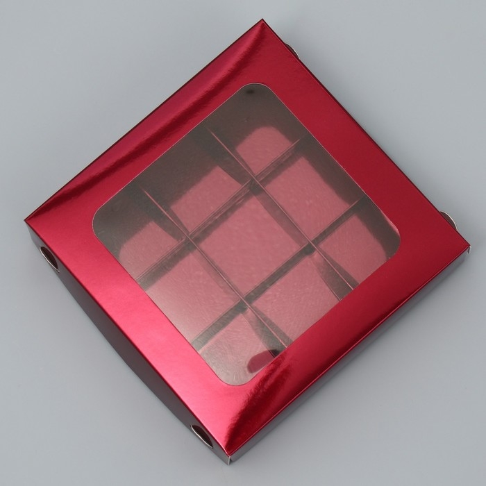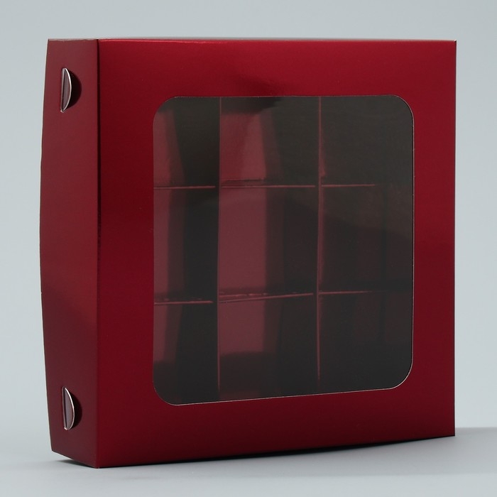 Коробка для конфет, кондитерская упаковка, 9 ячеек, «Бордовая», 14.7 х 14.7 х 3.5 см