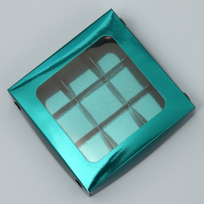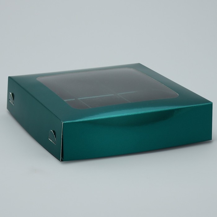 Коробка для конфет, кондитерская упаковка, 9 ячеек, «Изумрудная», 14.7 х 14.7 х 3.5 см