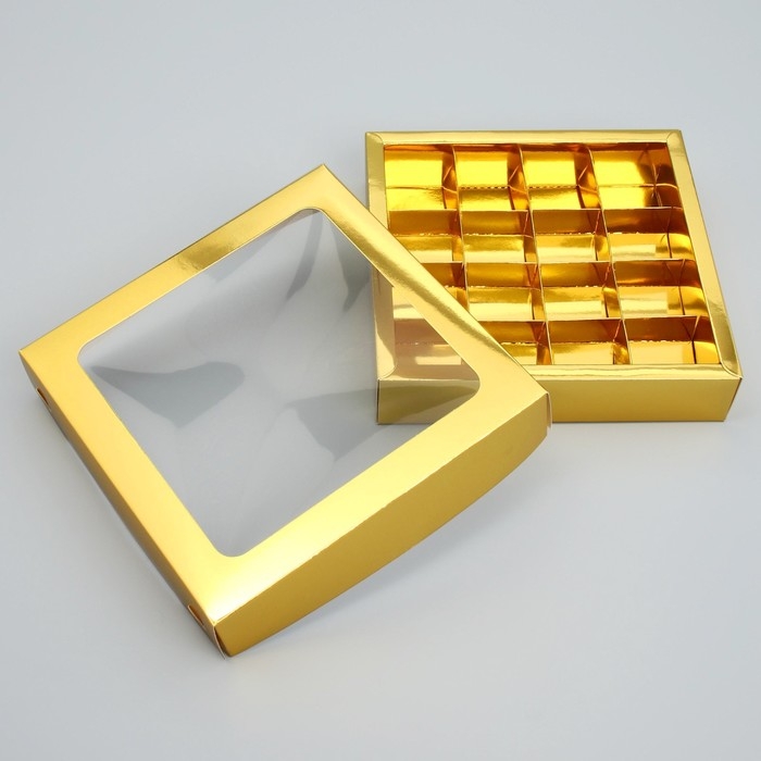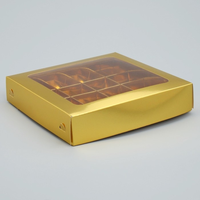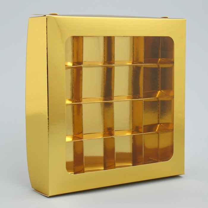 Коробка для конфет, кондитерская упаковка, 16 ячеек «Золотистая», 18.9 х 18.9 х 3.8 см