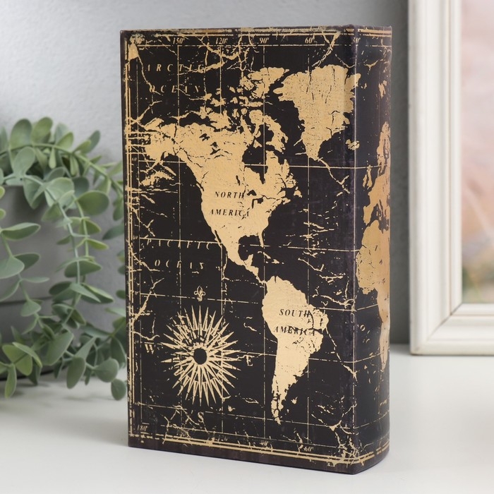 Сейф-книга дерево кожзам "Золотая карта" 21х13х5 см