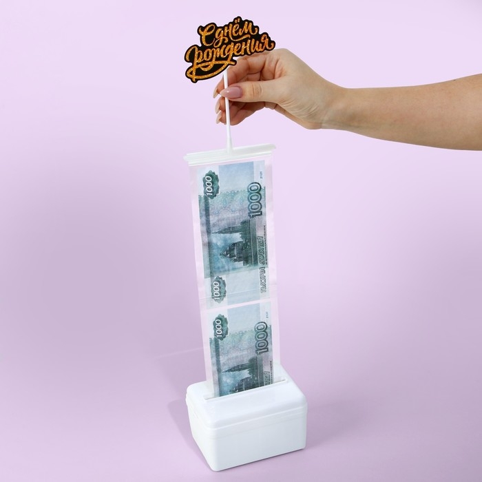 Ищете необычный и прикольный подарок сюрприз? Подарите деньги из торта. Торт с сюрпризом запомнится на любом празднике: день рождения, юбилей, новый год, совершеннолетие, гендер пати, свадьба. В комплекте также 20 пакетиков для денег, фото или записок с пожеланием, а также главный топпер для торта из блестящего картона с надписью Happy Birthday . Крепится с помощью липкой ленты к держателю. Когда настанет время просто попросите именинника дернуть за топпер и из торта появятся либо деньги, либо приятные пожелания. Дополнительно можно использовать свечи для торта для создания атмосферы праздника. Секретный бокс с деньгами сможет стать прекрасным подарком для мамы и папы, дедушки и бабушки, внука и внучки, коллеге, сыну, дочке, подруге, парню или любимой девушке. Не ограничивайте себя конверт для денег удивляйте и дарите своим близким деньги в оригинальной и запоминающейся форме.