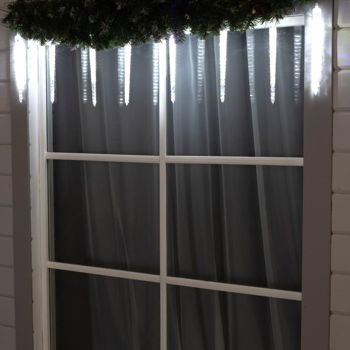 Гирлянда «Сосульки рифленые» 2.5 × 0.3 м, IP65, прозрачная нить, 192 LED, свечение белое с эффектом стекания, 12 В