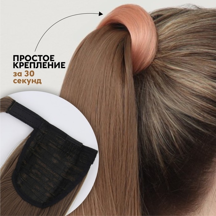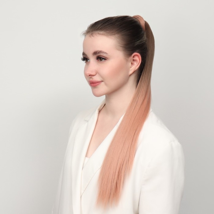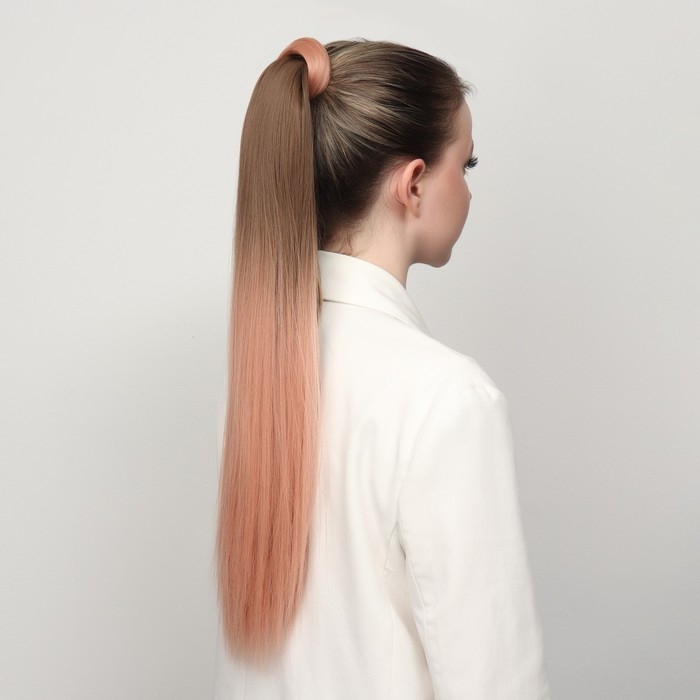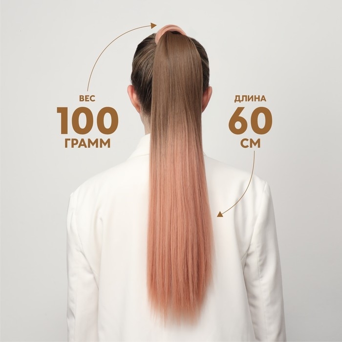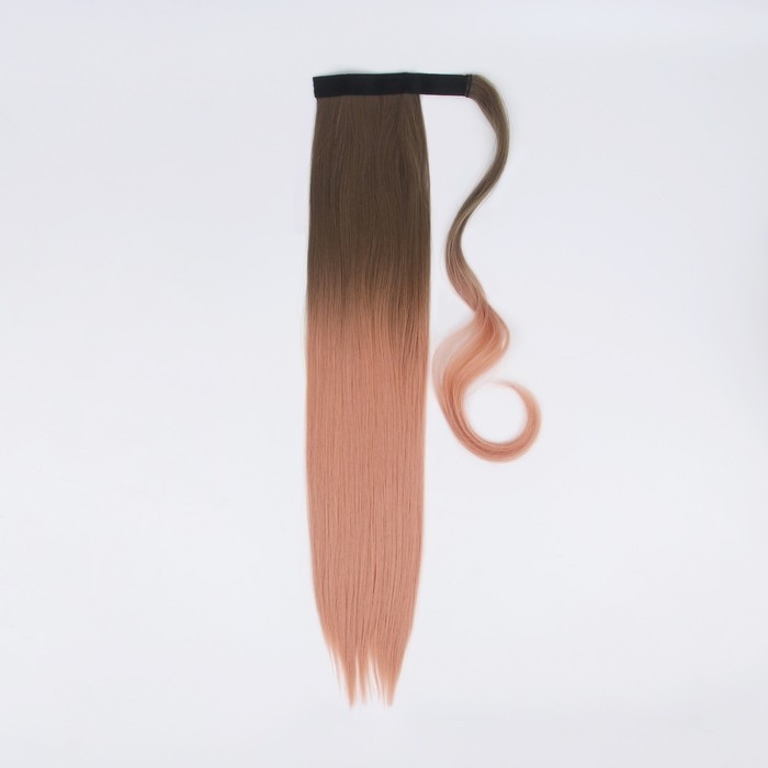 Хвост накладной, прямой волос, на резинке, 60 см, 100 гр, цвет омбре русый/пепельно-розовый