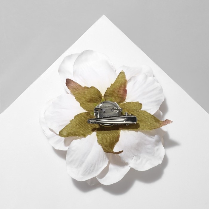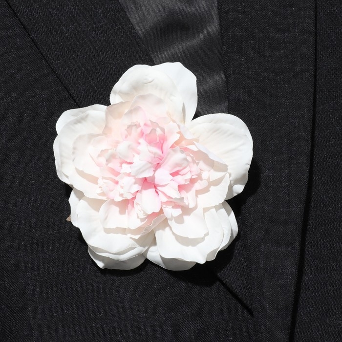Брошь-заколка текстильная «Цветок» пион, цвет бело-розовый