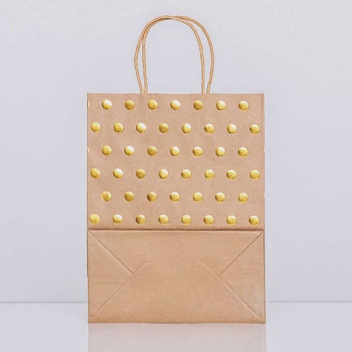 Пакет крафт с золотым тиснением, круглая ручка, 27 х 21 х 11 см, 120 г
