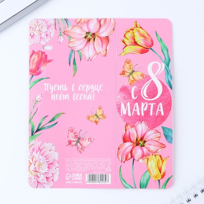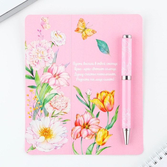 Ручка шариковая, синяя паста, 1.0 мм, на открытке металл, 1 мм «С 8 марта»