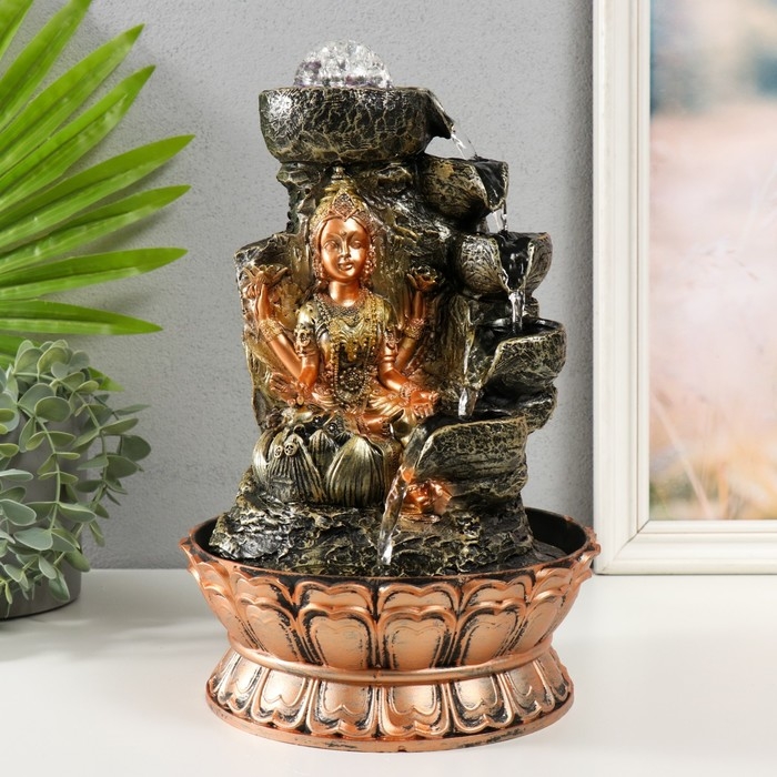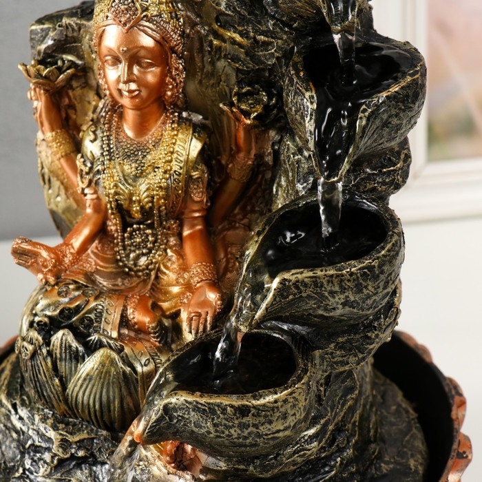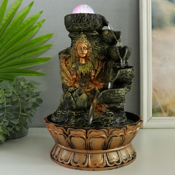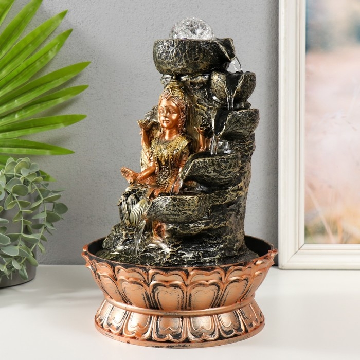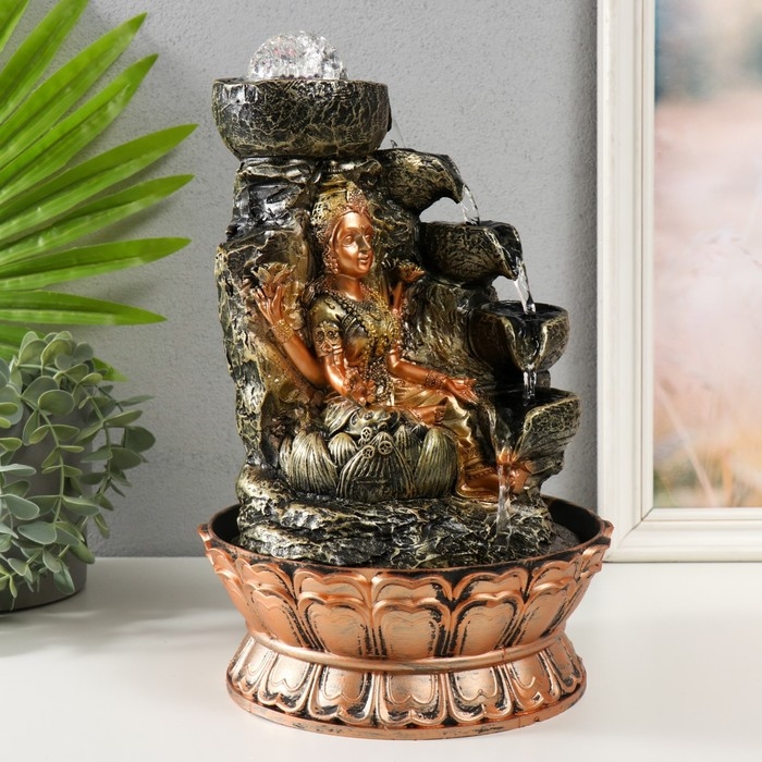 Фонтан настольный от сети, подсветка "Лакшми в золотом под водопадом" 20х20х30 см