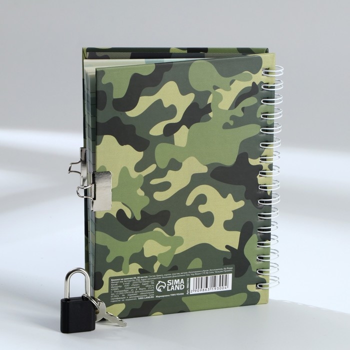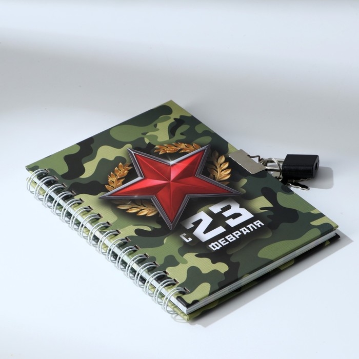 Блокнот на замочке А6, 50 листов в твердой обложке «С 23 февраля»