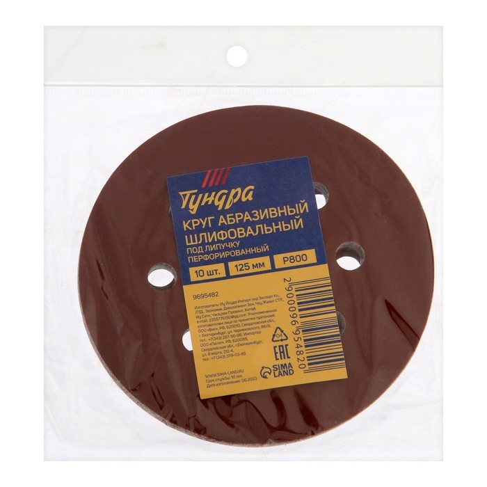Круг абразивный шлифовальный под "липучку" ТУНДРА, перфорированный, 125 мм, Р800, 10 шт.