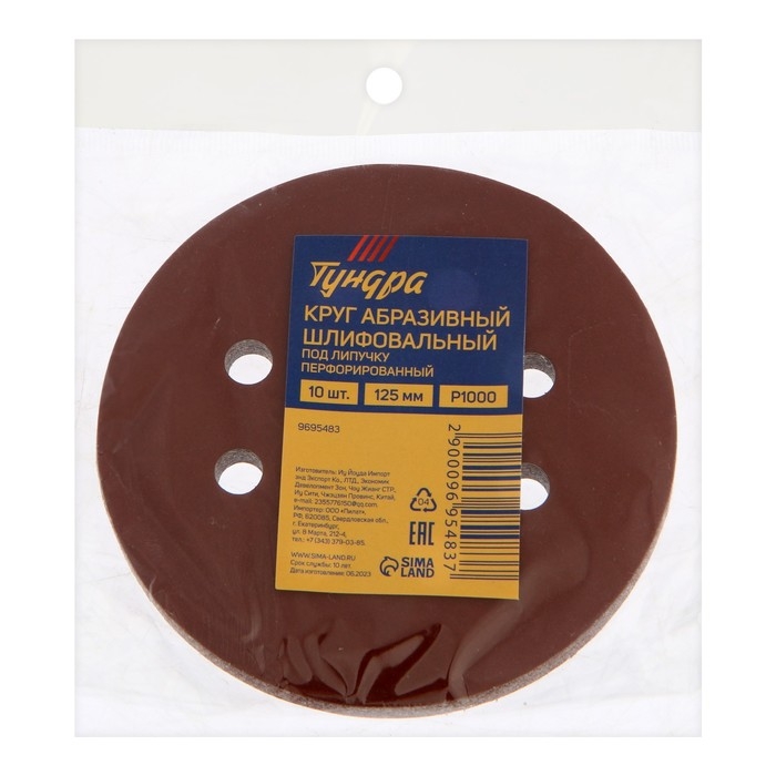 Круг абразивный шлифовальный под "липучку" ТУНДРА, перфорированный, 125 мм, Р1000, 10 шт.