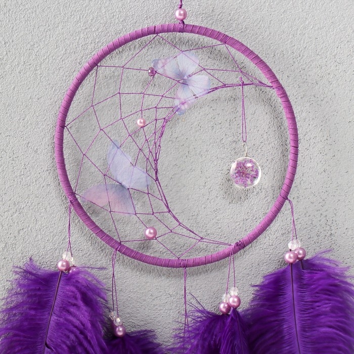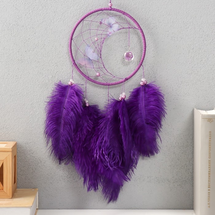 Ловец снов "Бабочки и страусиные перья" фиолетовый d=15 см 50х15 см