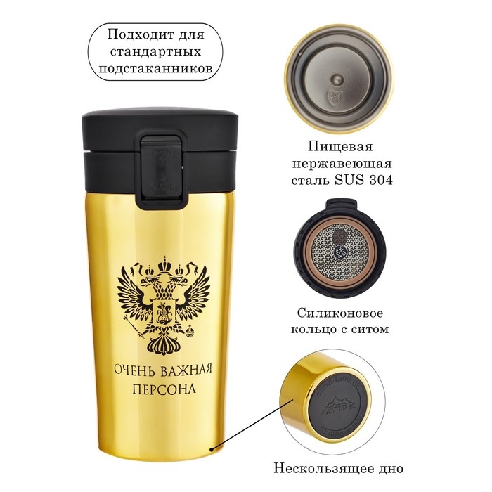 Термокружка, 380 мл, Style "Очень важная персона", сохраняет тепло 8 ч, с ситечком
