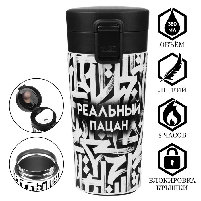Термокружка, 380 мл, Style "Реальный пацан", сохраняет тепло 8 ч, с ситечком