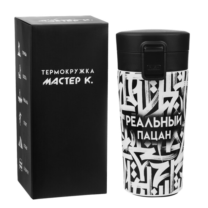 Термокружка "Мастер К" - это стильный аксессуар и отличный подарок на новый год, другу, подруге, брату, сестре, девушке, папе, маме, мужу, жене, бабушке и дедушке на день рождения, 23 февраля, 8 марта, 14 февраля.