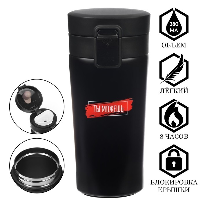 Термокружка, 380 мл, Style "Ты можешь", сохраняет тепло 8 ч, с ситечком