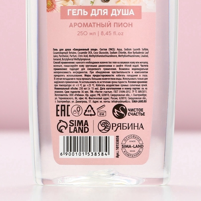 Гель для душа ЧИСТОЕ СЧАСТЬЕ «Для тебя», 250 мл, аромат нежного пиона