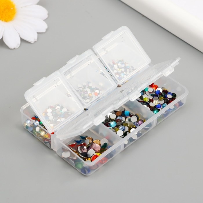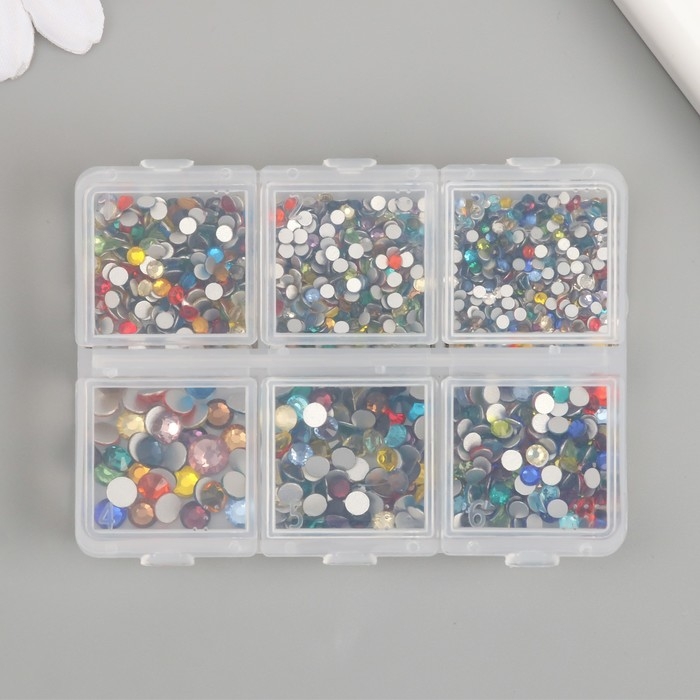 Декор для творчества стекло "Стразы. Разноцветный" d=2-4,8 мм н-р 1188 шт 6х8х1,5 см