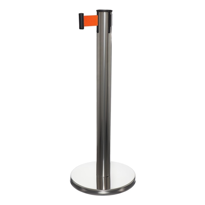Стойка ограждения сер с вытяжной лентой-180см ОРАНЖЕВ,высота-90см,d- 6см,напольный d-32см