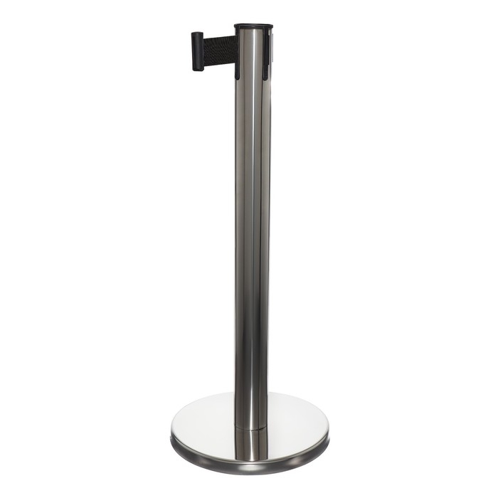 Стойка ограждения серебряная, с вытяжной лентой-180 см красная, белый, высота-90см, d- 6см, напольный d-32см