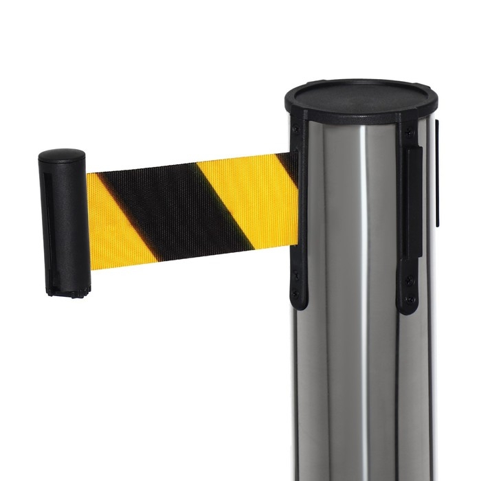 Стойка ограждения серая, с вытяжной лентой-470 см желтая - черная, высота-90см,d- 6см,напольный d-32см