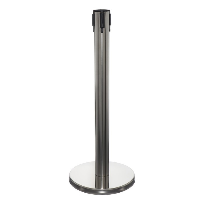 Стойка ограждения серебряная, с вытяжной лентой-180 см красная, белый, высота-90см, d- 6см, напольный d-32см