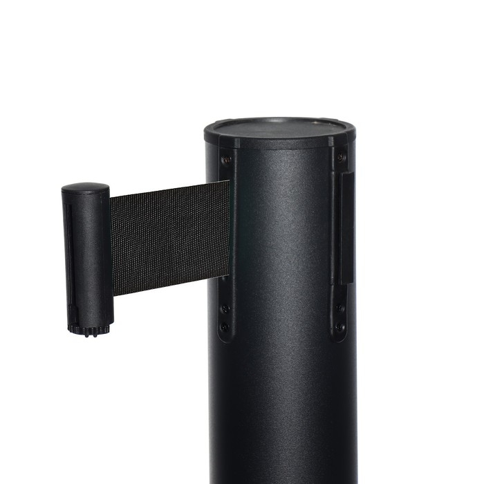 Стойка ограждения черная, с вытяжной лентой-280см, черная, высота-90см, d- 6см, напольный d-32см