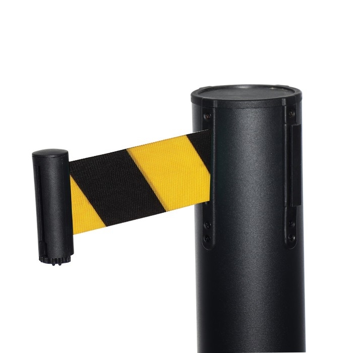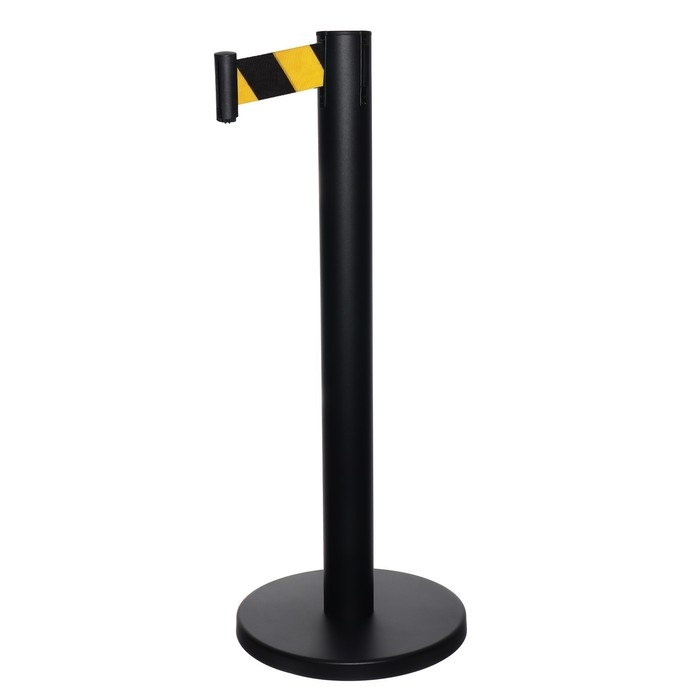 Стойка ограждения черная, с вытяжной лентой-280см желтая, черная, высота-90см, d- 6см, напольный d-32см