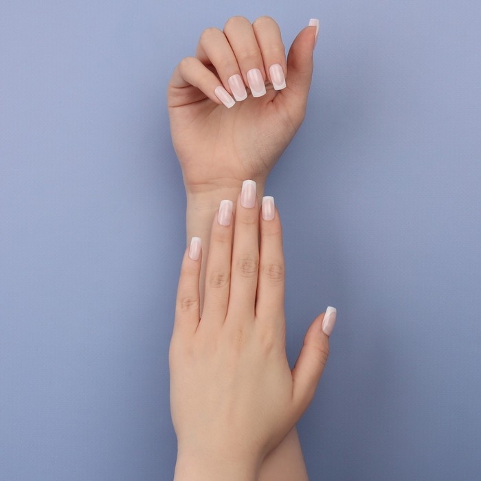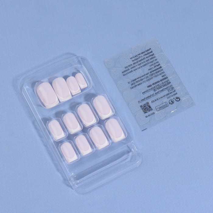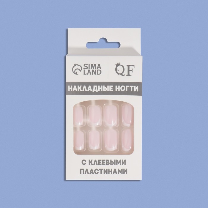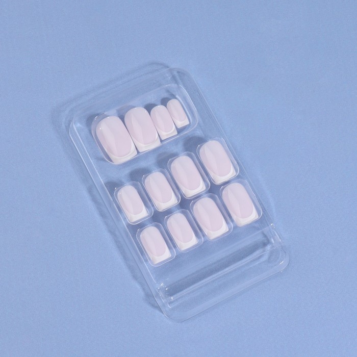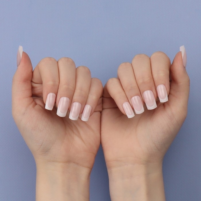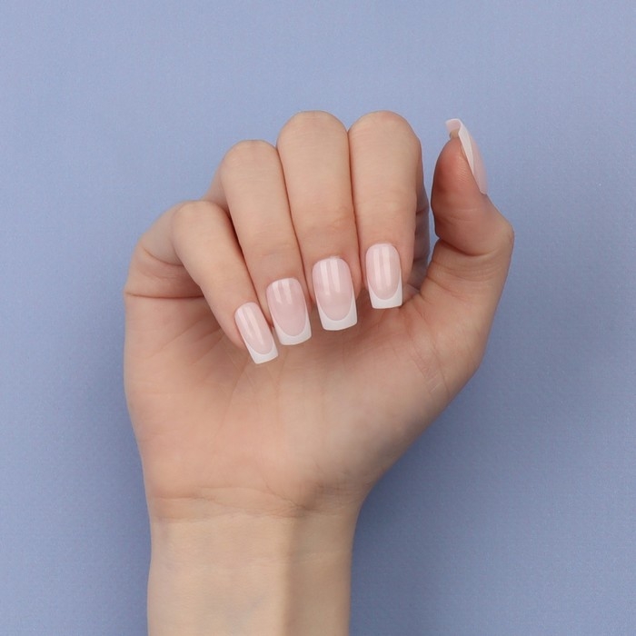 Накладные ногти «Classic French», 24 шт, с клеевыми пластинами, форма мягкий квадрат, цвет нежно-розовый/белый