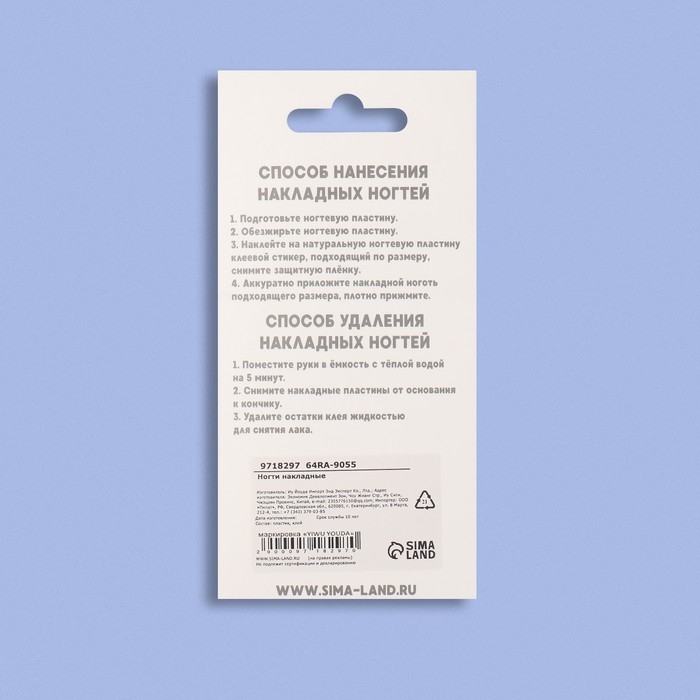 В наборе с накладными ногтями идут клеевые пластины. За счёт этого уменьшается вероятность механического травмирования природного ногтя. Клеевые пластины безопасны в применении и не вредят натуральным ногтям, в отличие от клея. Клей содержит составе высокую токсичность, что может сказаться на вашем организме.