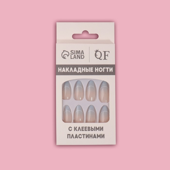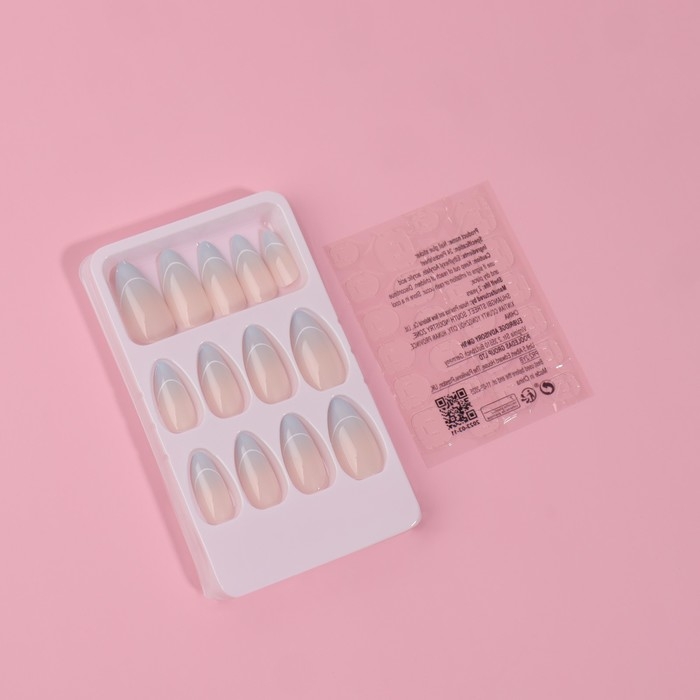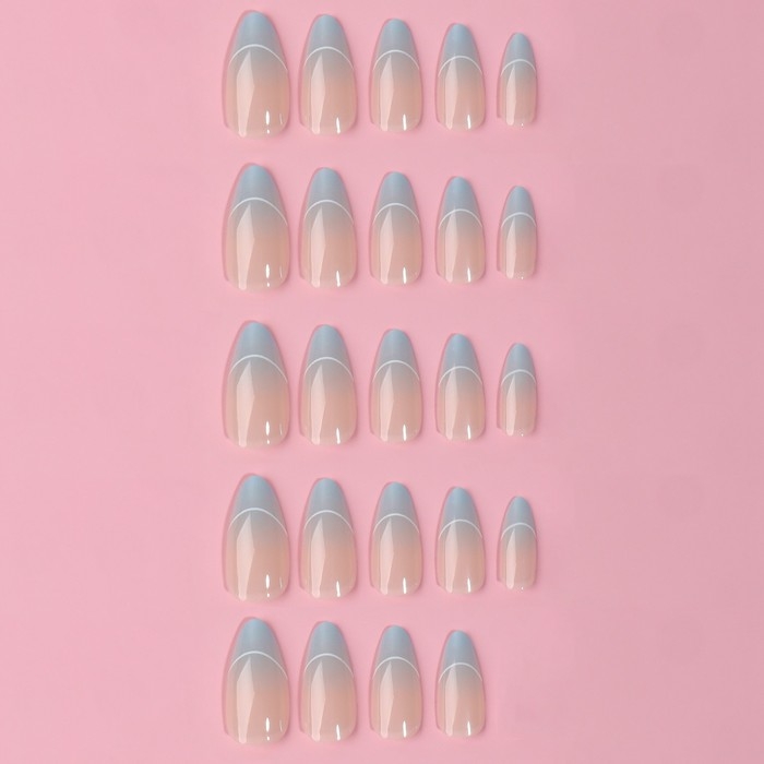 Накладные ногти «French», 24 шт, с клеевыми пластинами, форма миндаль, цвет бежевый/голубой