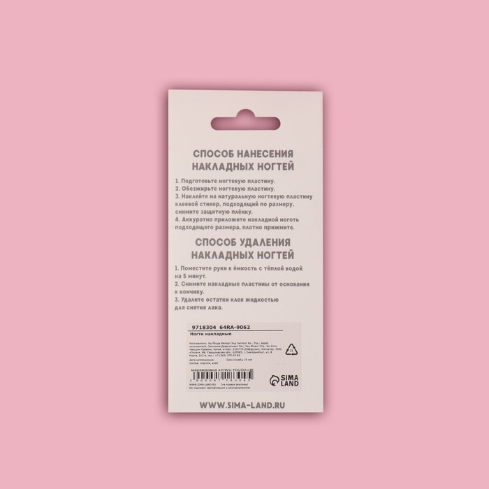 Максимальный срок носки накладных ногтей – 14 дней. Не рекомендуем перенашивать. При бережном ношении могут использоваться несколько раз.