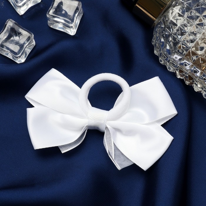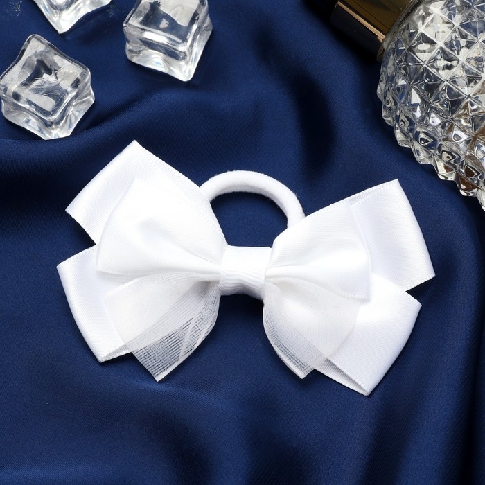 Резинка для волос бант "Школьница" блеск галант, 8х4 см, белый
