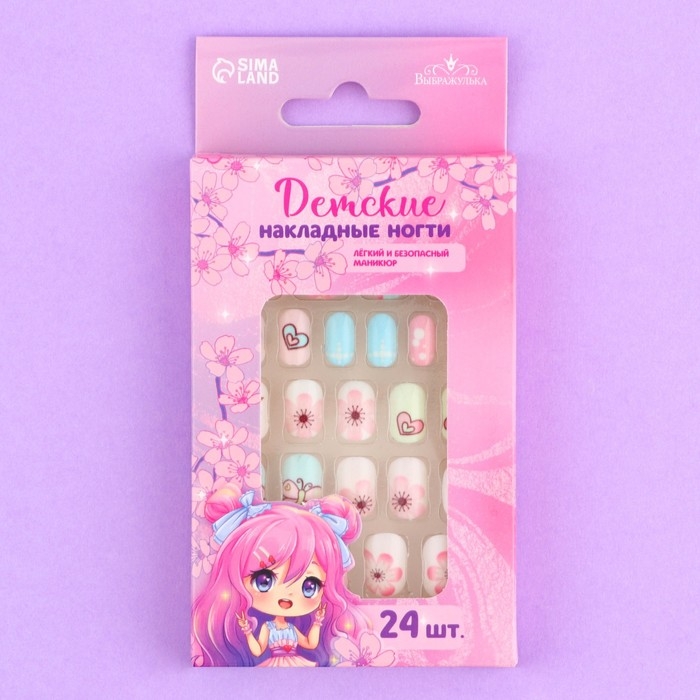 Детские накладные ногти «Цветочки», 24 шт