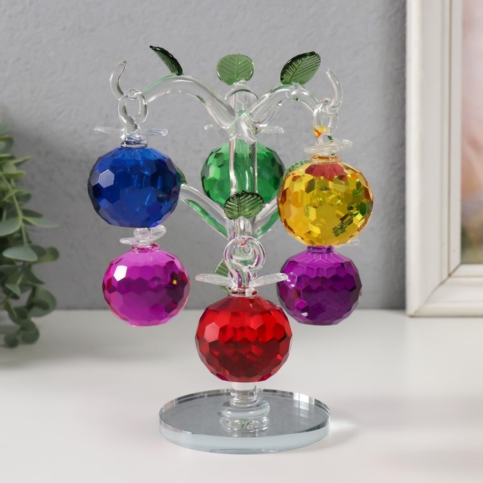 Сувенир стекло "Хрустальная яблоня с цветным яблоками" 14х14х17 см