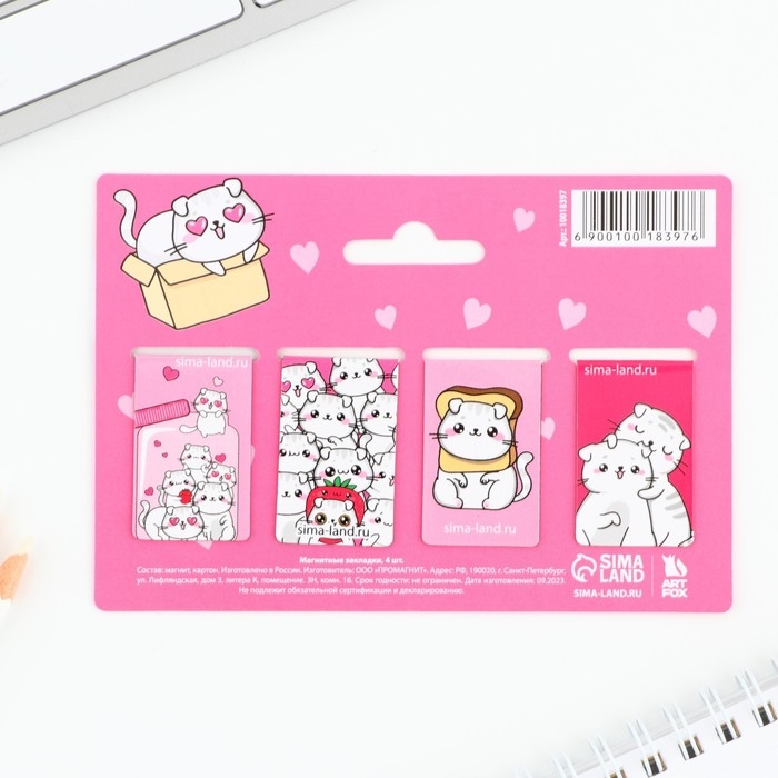Набор магнитных закладок для книг Calligrata 6 штук, "Кошки", МИКС