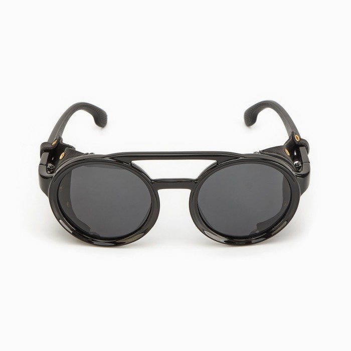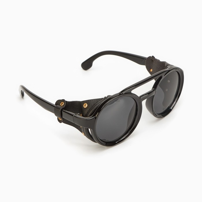 Очки солнечные круглые, uv 400, кожаные шторки, дужка 14.1 см, ширина 12.1 см, линза 5.2 х 5 см, чер
