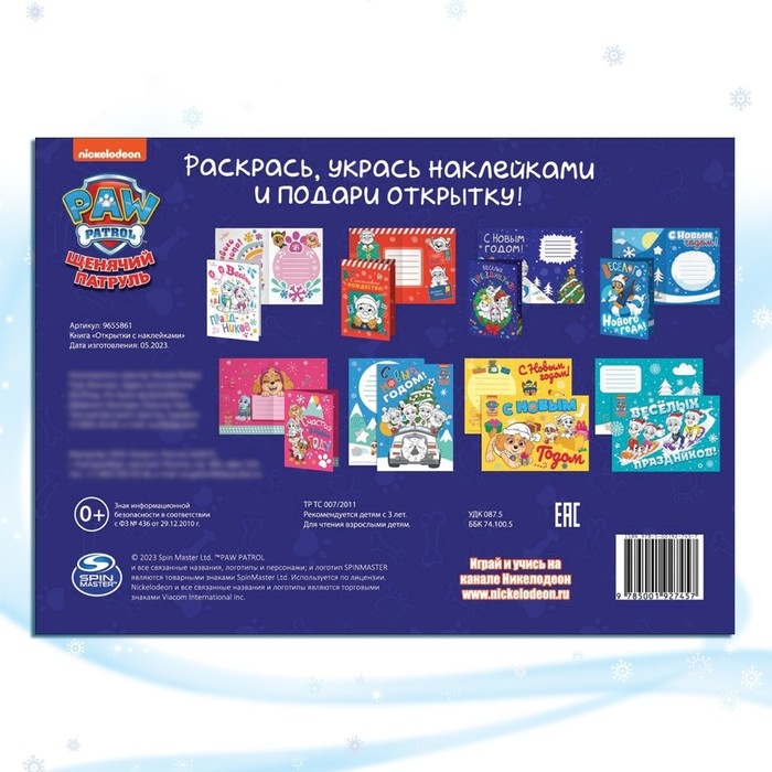 Книжка с наклейками «Новогодние открытки», 20 стр., 8 открыток, 17×24 см, Щенячий патруль
