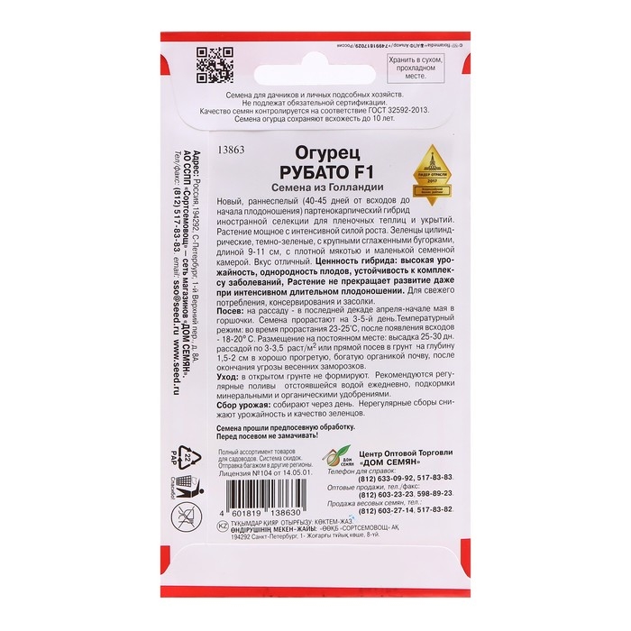 Семена Огурец "Рубато F1", 6 шт